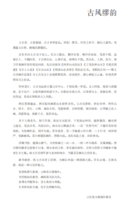 黄国庆先生为缪文杰作品集《缪韵古风》题序