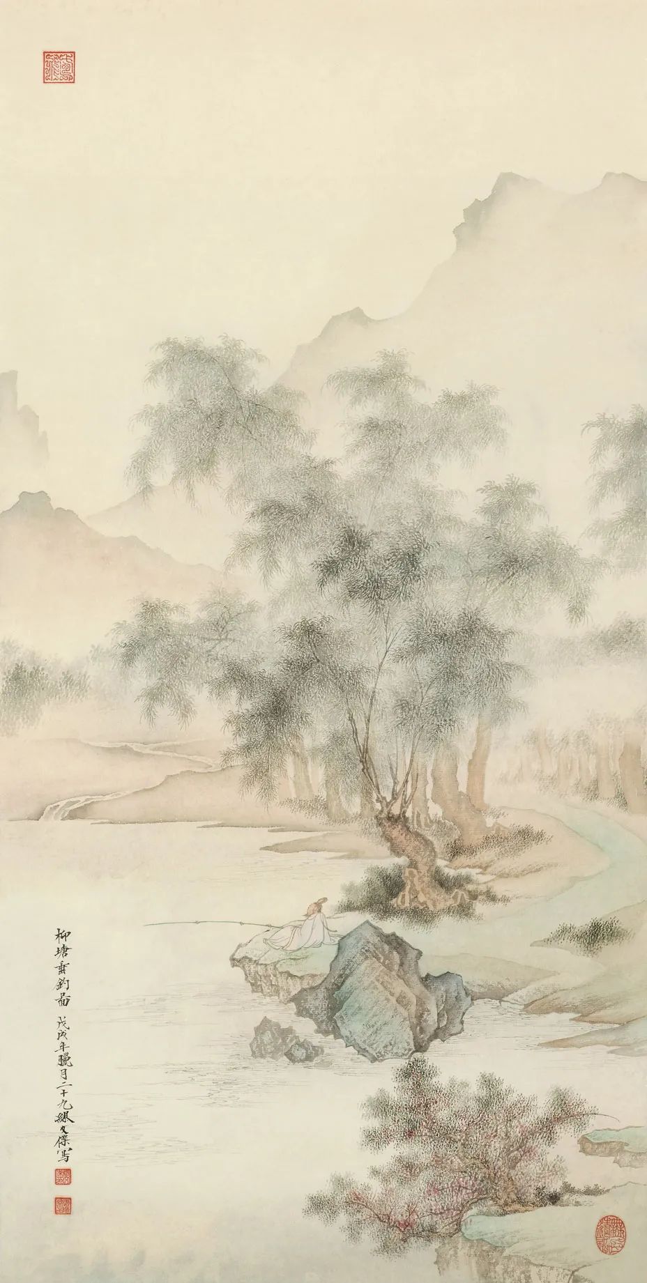 《春柳垂钓》